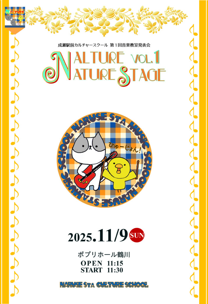 なるチャーの第1回目の音楽発表会は 『なるチャーナチュラルステージ』と称します♪
